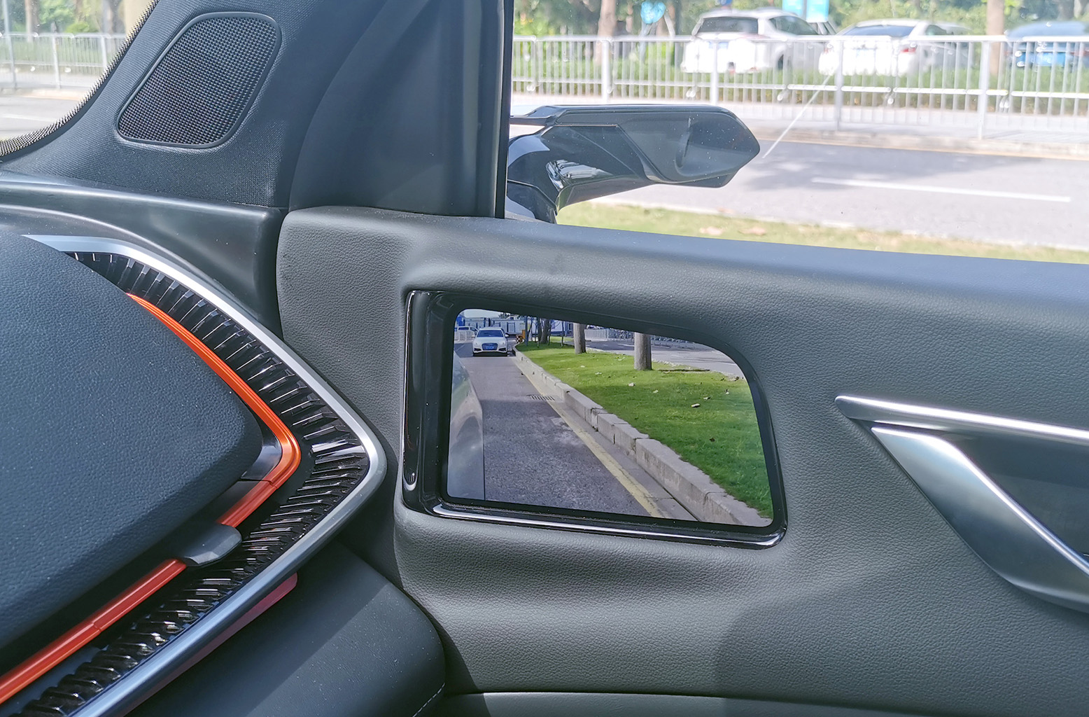 車規(guī)級(jí)OLED柔性屏貼合A柱設(shè)計(jì),通過(guò)算法實(shí)現(xiàn)A柱“透明化、可視化”,不影響造型美觀與A柱強(qiáng)度情況下,完美解決A柱盲區(qū)問(wèn)題。